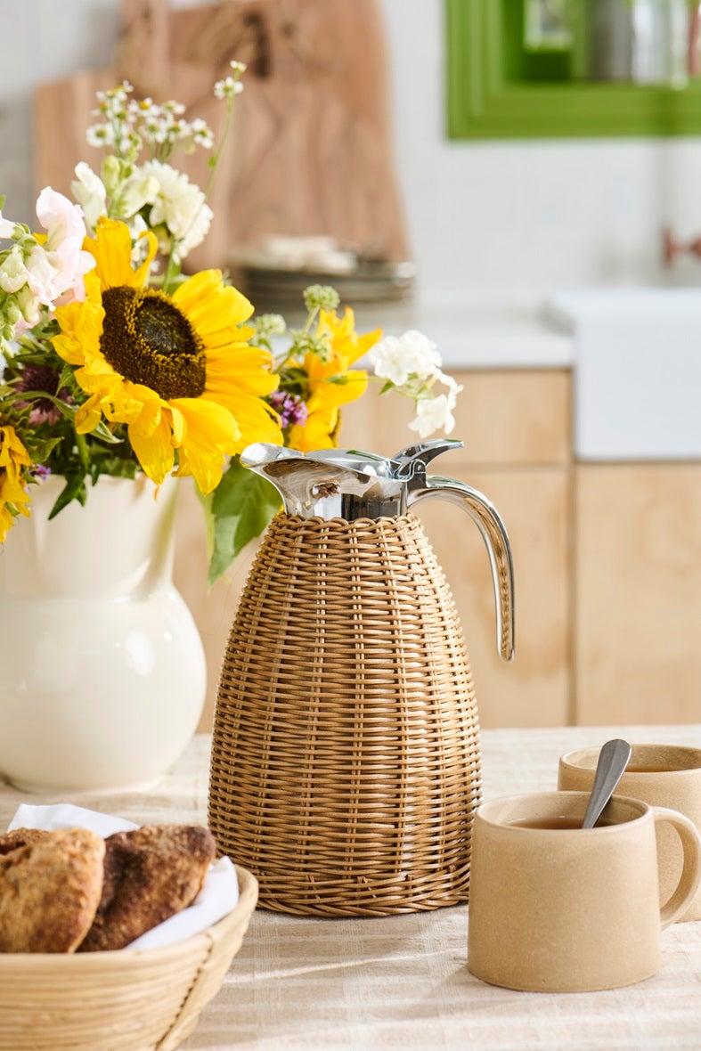Käytännöllinen, mutta myös niin kaunis, polyrottingilla päällystetty termoskannu, jonka kelpaa nostaa juhlavampaankin pöytään.