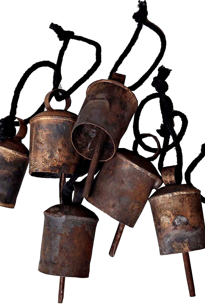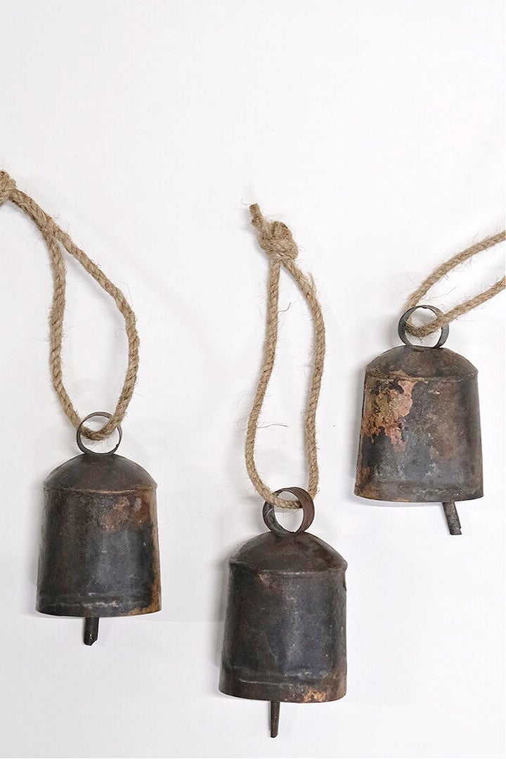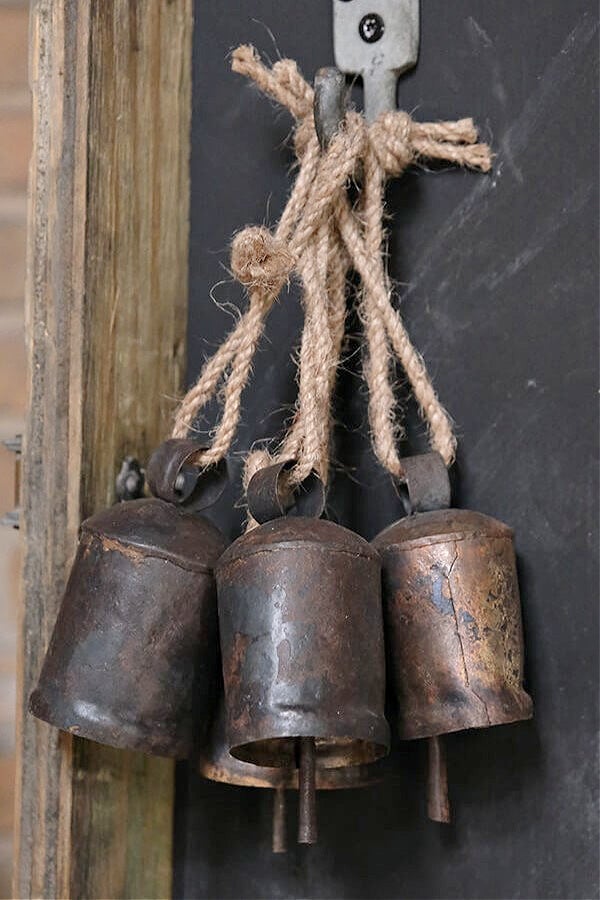 Tämä koristekello on kierrätystuote sanan varsinaisessa merkityksessä. Kellot ovat aiemmin roikkuneet lehmien ja vuohien kaulassa, mutta suorittavat nyt rustiikkisen koristeen virkaa. Kelloon on lisätty juuttinauha ja voit sen ripustaa mihin ikinä haluat.