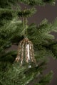 Kirkkaasta lasista ja kultayksityiskohdista valmistettu koriste on kellon muotoinen. Koristeen mukana tulee ripustusnauha.