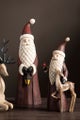 Kolme erilaista joulupukkia koristamaan kotia jouluaikaan. Koristeiden pinta muistuttaa vanhaa rustiikkista puuta ja mallit ovatkin kuin suoraan entisiltä ajoilta.