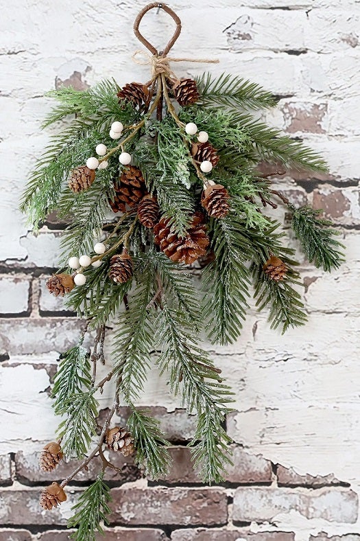 Upea havukoriste, jossa koristeena aitoja käpyjä. Yläosassa lenkki, josta koristeen voi ripustaa seinälle.
