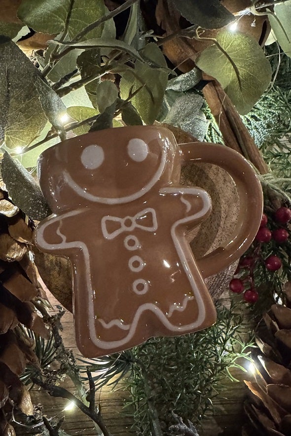 Tämä suloinen piparkakkumuki on kuin suoraan joulun satumaailmasta! Ruskea keramiikka ja valkoiset yksityiskohdat tekevät siitä täydellisen lisän joulupöytään. Sopii erinomaisesti kahville, teelle tai kaakaolle, ja on myös suosittu joululahjaidea.