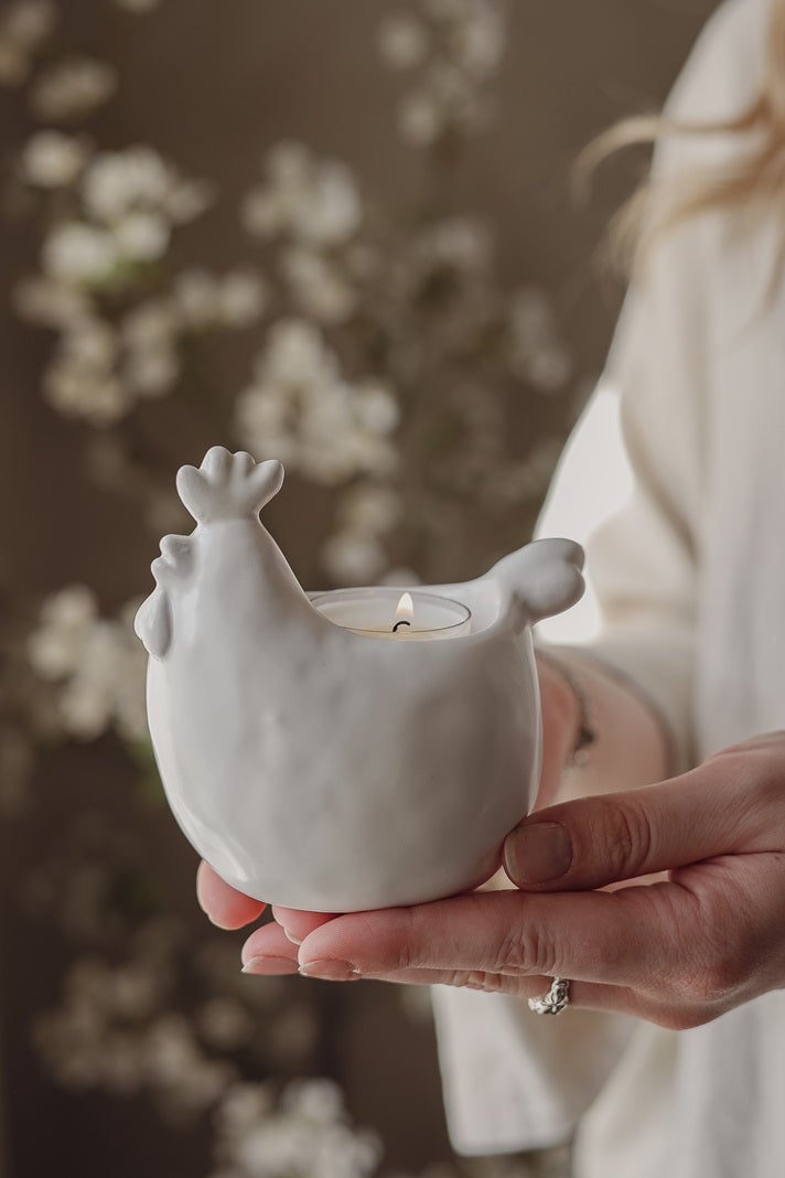 Lisää kotiisi ripaus maalaisromanttista tunnelmaa näillä hurmaavilla kanan ja kukon muotoisilla kynttilälyhdyillä. Nämä kauniit lyhdyt on valmistettu valkoisesta keramiikasta ja niiden sisälle mahtuu yksi tuikkukynttilä, joka valaisee pehmeästi ja luo kodikkaan tunnelman ympäri vuoden.