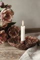 Reaktiivinen lasite tekee jokaisesta kappaleesta ainutlaatuisen, sävyt vaihtelevat lämpimän ruskean, kastanjan ja maanläheisten vivahteiden välillä luoden käsintehdyn vaikutelman, joka tekee kynttilänjalasta upean sisustuselementin. Kynttilä pysyy tukevasti paikoillaan pidikkeeseen asetettuna ja lautasmainen pohja suojaa pintoja mahdollisilta valumilta.