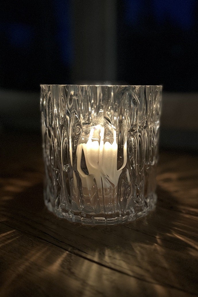 Kirkas tai harmaa lasi päästää kynttilänvalon loistamaan pehmeästi läpi uurteisen pinnan, luoden kauniin ja lämpimän valoleikin ympärilleen. Pienikokoinen, mutta näyttävä lyhty on täydellinen yksityiskohta pöydälle, ikkunalaudalle, terassille tai osaksi tunnelmallista kattausta.