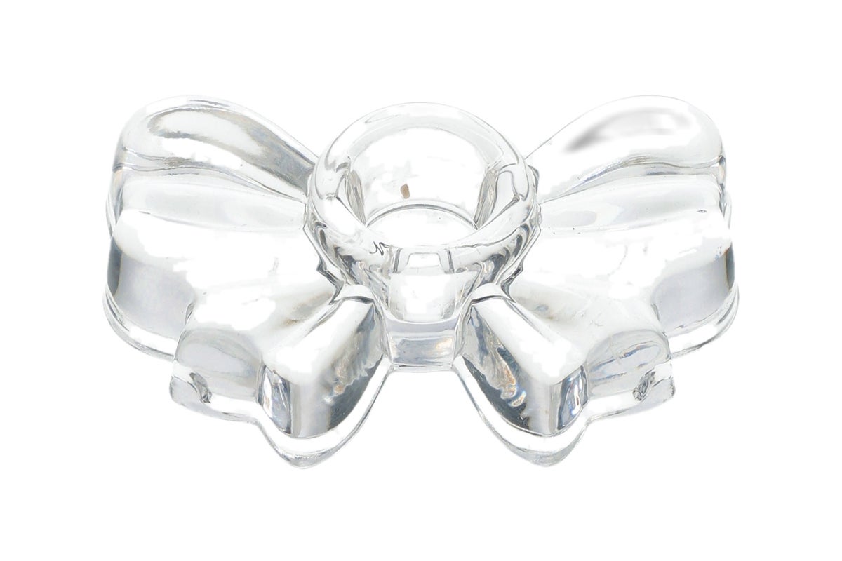 Tuo juhlavuutta kattaukseen kauniilla kirkkaasta lasista valmistetulla kynttilänjalalla, jota koristaa suloinen lasinen rusetti. Kynttilänjalka yhdistää ajattoman muotoilun ja romanttisen yksityiskohdan, mikä tekee siitä täydellisen lisän niin arkeen kuin juhlaan.