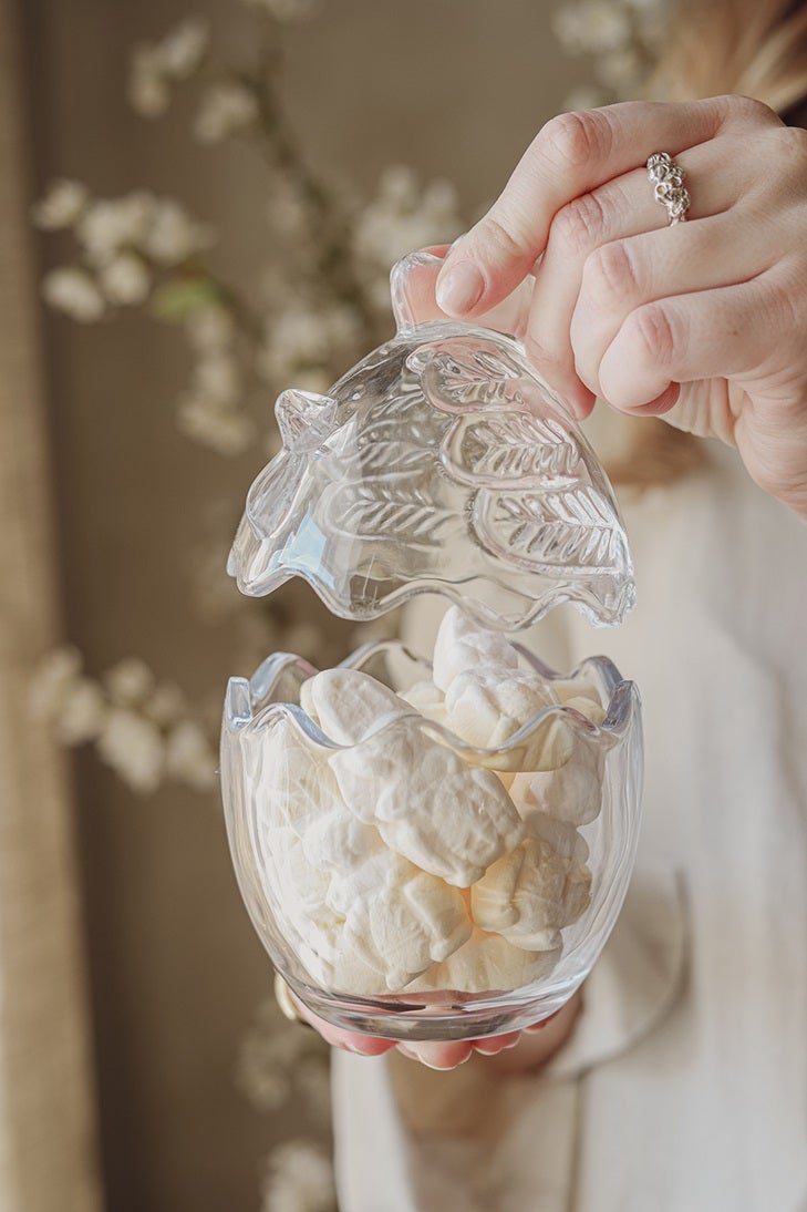 Täytä suklaamunilla, karamelleilla tai käytä kauniina säilytysastiana keittiössä. Isomman astian sisälle mahtuu hyvin myös valolanka ja voit näin koristella sen sopimaan sesongin sisustukseen.