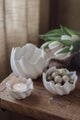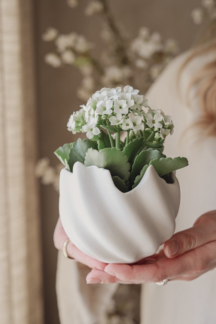 Hauskat, luonnon inspiroimat keramiikka-astiat, jotka muistuttavat rikottua munankuorta. Kauniiden kulhojen mattavalkoinen pinta ja orgaaninen muoto tekevät niistä täydellisen lisän kodin keväiseen sisustukseen. Sopivat monipuolisesti tarjoiluun, kukka-asetelmiin tai kynttilänjalaksi.