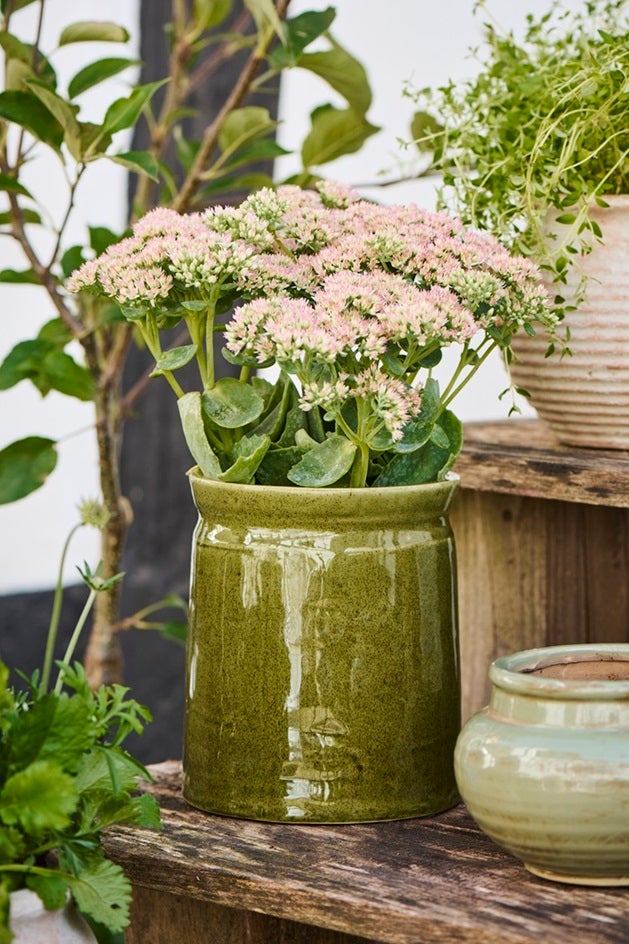 Sisustukseen luonnollista harmoniaa ja ajatonta eleganssia tällä upealla keraamisella ruukulla. Sen kauniin vihreä, eläväpintainen lasite hehkuu valossa ja korostaa kasvien vehreyttä täydellisesti. Ruukku sopii loistavasti niin huonekasveille kuin koristekäyttöön – yksinään tai osana sommitelmaa.