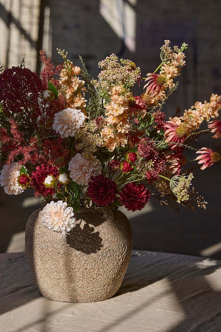 Saatavilla on neljä eri sävyä, joiden joukosta löytyy vaihtoehto niin pehmeään, romanttiseen kuin syvempään ja voimakkaampaan tyyliin. Sävymaailmassa on persikkaa, vaaleanpunaista, pinkkiä ja viininpunaista, joten kukat on helppo sovittaa eri sesonkeihin ja sisustustyyleihin.